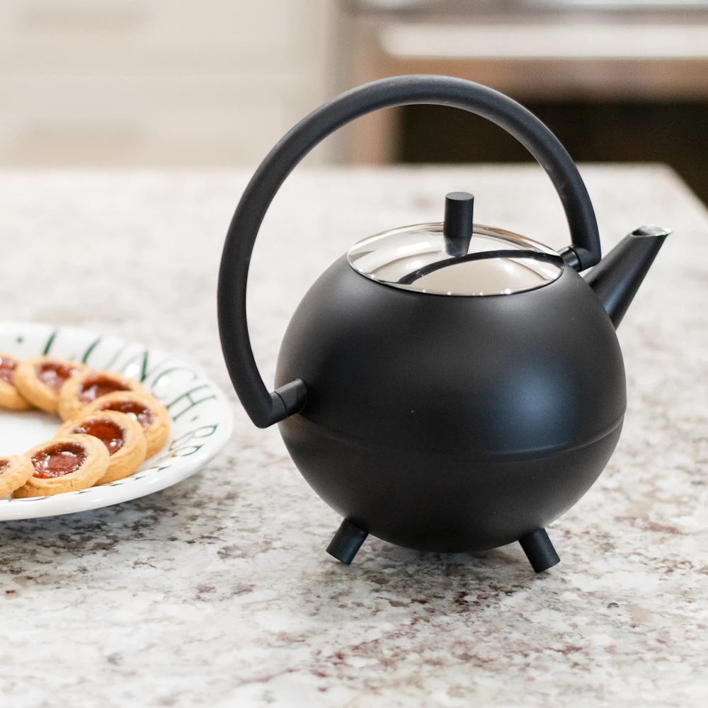 Designed in part by well-known German designer Tassilo von Grolman, Bredemeijer’s stylish Saturn Teapot shows off an ultra-modern circular construction crafted from hardy stainless steel. The matt black finish will complement any breakfast table or kitchen counter with elegance and disguises the brand’s unique and famous double insulating wall construction. This ingeniously ensures the temperature and flavour of your tea are retained for up to an hour, as long as the teapot is kept at least 90% full. With a large volume capacity of 1.2L, it can pour between 7 and 8 cups of tea, making it perfect for when guests come over for a brew and a biscuit. The specially designed spout guarantees smooth pouring with no pesky drips ruining your coasters or coffee table and the handle and lid knob will never get hot, preventing burns with ease. A chic addition to any homeware repertoire, this contemporary piece makes teatime a true treat.