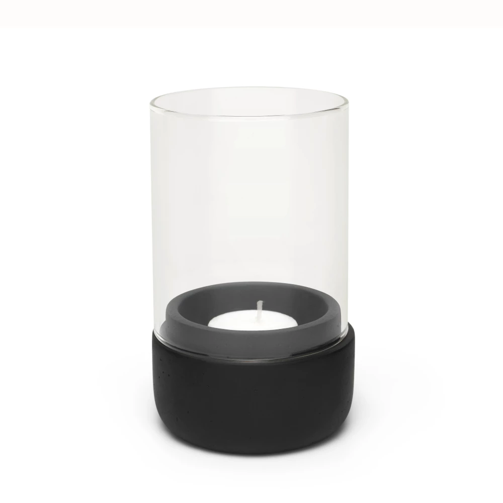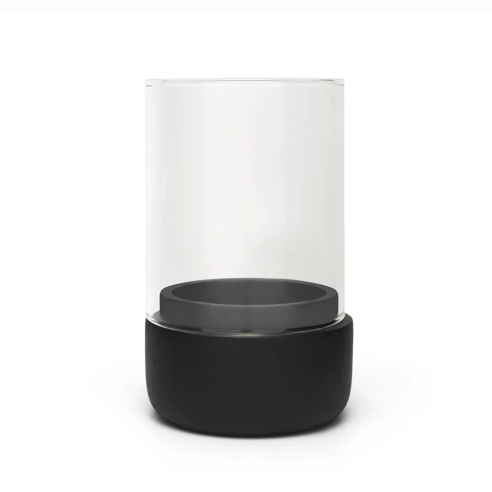 Zilverstad Hurricane Lamp Solido Design in Black Concrete with Glass Small Dia 7.5x13cm