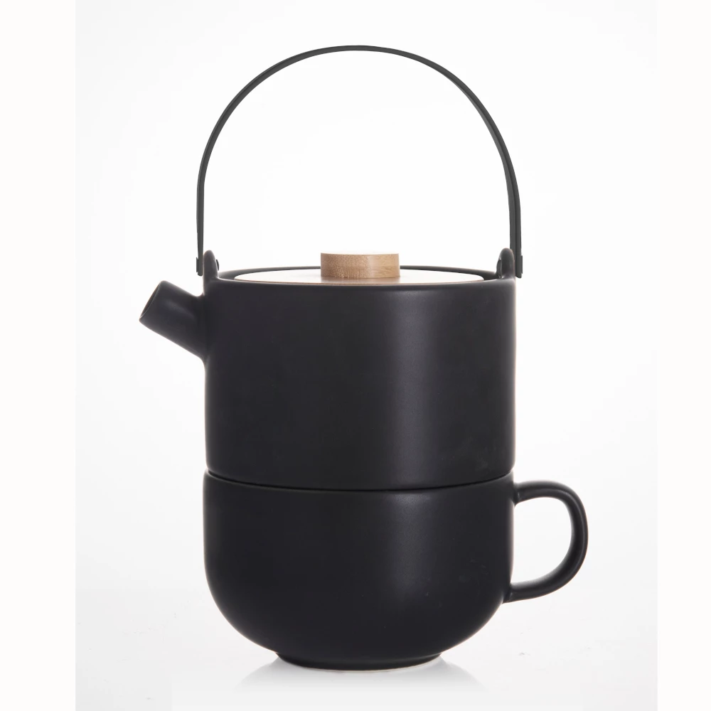 Bredemeijer Tea For One Set Umea Design in Black with Bamboo Lid