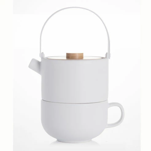 Why not take a moment for yourself and make a refreshing cup of tea in no time at all with this lovely tea-for-one set. The pot and cup are made of stoneware and the lid is made from fully sustainable and environmentally friendly bamboo. Unlike many alternatives the cup is stored under and not over the pot thus avoiding unsightly dribbles down the pot when stored!The design is inspired by the oriental style of keeping things simple, beautiful and functional. Great too for storage in small spaces.It takes 0.5 litres more than enough for a cuppa! Enjoy!