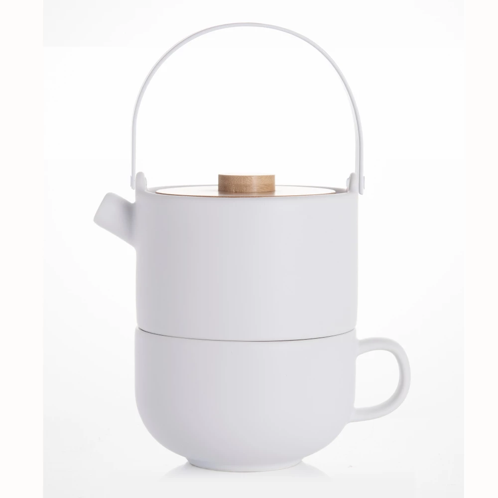 Bredemeijer Tea For One Set Umea Design in White with Bamboo Lid