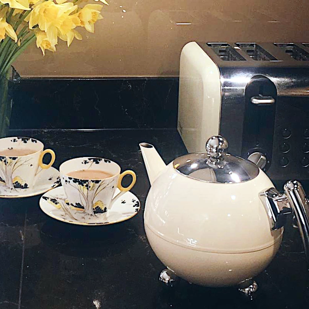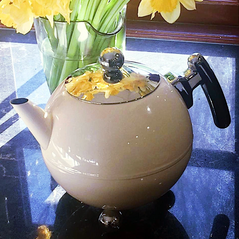 The Bella Ronde Teapot is, as the name implies, a beautifully round shape with a capacity of 0.75L (750ml) or approx 4-5 150ml teacups of tea. (note a Mug contains around 350ml, twice or more of a Teacup!).