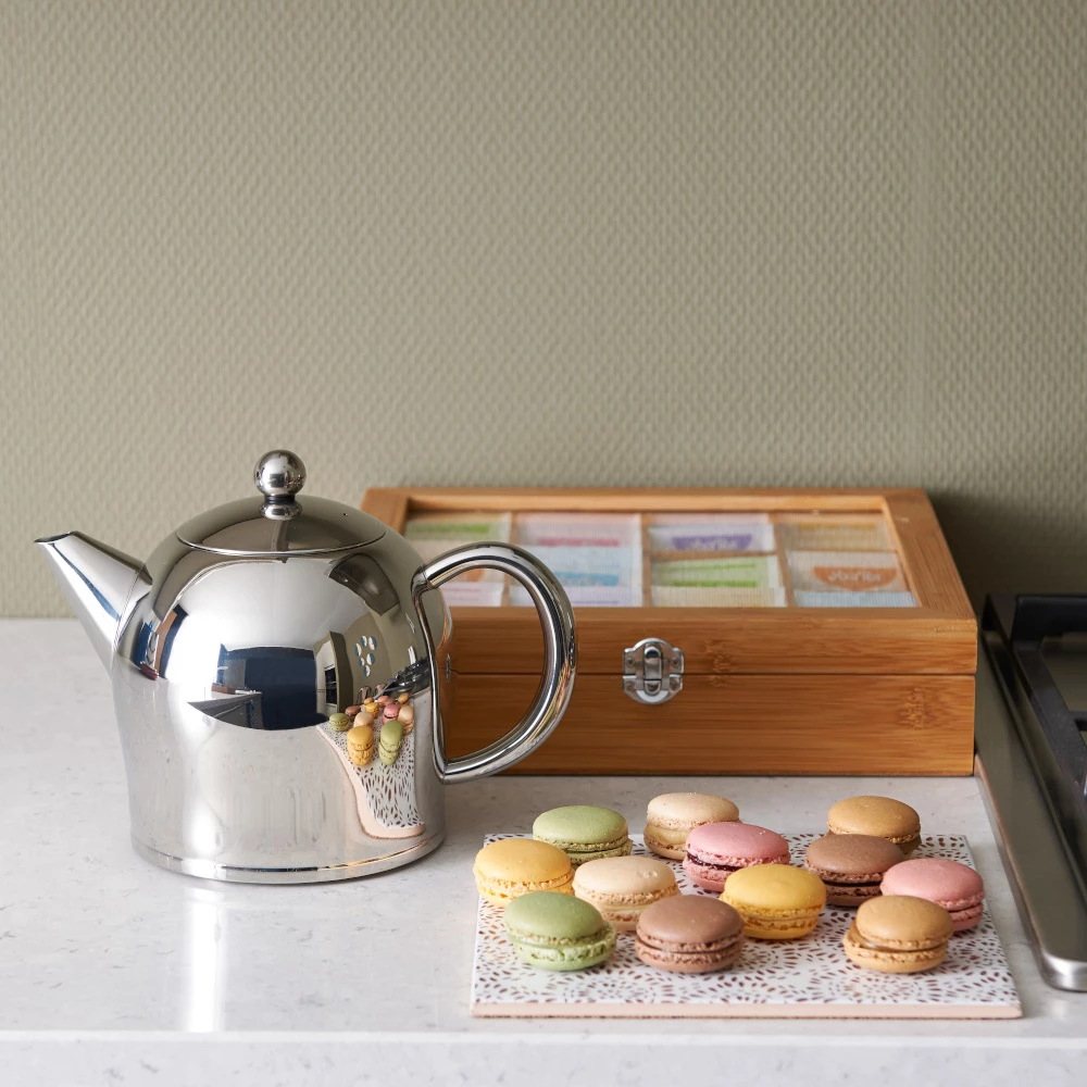 Our Santhee Teapot starts at the base with a smooth upright wall slowing turning into a slightly bulbous rounded top to create an extremely harmonious and tactile shape. Constructed of the highest quality brushed satin finish stainless steel it holds 2.0L (2000ml), approximately 12-13 150ml teacups of tea. (note a Mug contains around 350ml, twice or more of a Teacup!)There are no hard rules for sizes and Teacups can of course vary plus it depends on how you pour! As a guide an average Teacup is said to contain 150ml when filled to 1.5cm of the rim. Thus Teapots sized up to 0.6L pour 3-4 cups, up to 1L 5-6 cups, up to 1.2L 7-8 cups, up to 1.5L 9-10 cups and our largest 2.0L 12-13 cups. If in doubt check the size of your Teacup first and remember with a Mug you will get half the number of Cups!