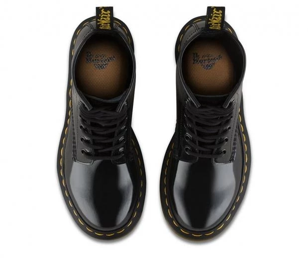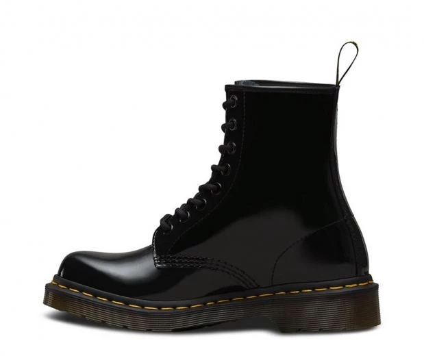 Un cuero nuevo para un diseño atemporal: esta bota emblemática de 8 ojalillos resplandece en brillante charol. La 1460 lleva todo lo que representa el ADN de las clásicas Docs: los bordes estriados, la lengüeta de cuero y la puntada amarilla. Hecha para durar, se ha creado siguiendo uno de los mejores métodos de construcción: la vira Goodyear. Esto significa que la pala y la suela están termoselladas y cosidas con una puntada en Z. La bota descansa sobre nuestra emblemática suela AirWair™, resistente al aceite y a la grasa, antiabrasión y antideslizante. Empeine: 100% Cuero untado Forro y plantilla: 55% Cuero, 45% Textil Suela: 100% PVC