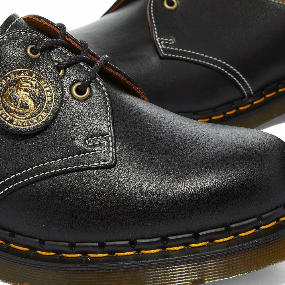 La parte superior de los “zapatos de 3 agujeros MIE 1461 KUDU” está hecha del cuero más fino de “CHARLES F.STEAD”. El cuero CLASSIS KUDU de grano fino se caracteriza por una superficie texturizada, que le da un aspecto rico cuanto más se usa. Un artículo especial con una etiqueta giratoria grabada con el logotipo “CHARLES F.STEAD”. Se aplican pespuntes en blanco hueso a todo el zapato para acentuar el contraste.