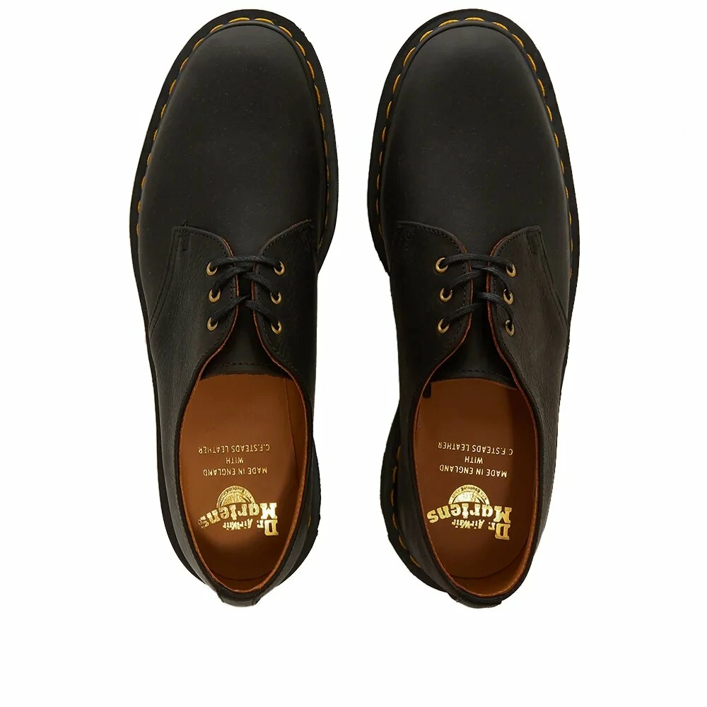Este año celebramos el 60 aniversario de nuestro zapato original de 3 ojales con una serie de reinterpretaciones. Cada par conmemorativo se ha confeccionado a mano en nuestra fábrica original de Inglaterra. Esta edición lleva el icónico diseño a sus raíces, y reconstruye el zapato en la piel de alta calidad ‘Classic Oiled Shoulder’ de la curtiduría C. F. Stead, con sede en Leeds. Confeccionados una horma estilizada 387 sobre la suela clásica de DM’s, los zapatos de la colección Made in England están acabados con nuestro pespunte amarillo y ojales de latón envejecido.