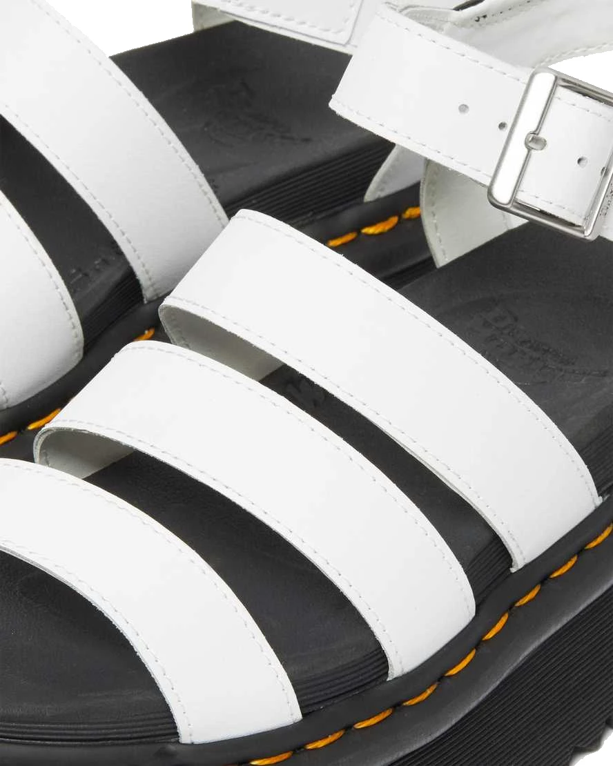 Nuestra resistente sandalia está asentada sobre nuestra alta pero liviana plataforma Zebrilus. El cuello acolchado y la plantilla SoftWair te mantendrán ágil todo el día. Construida en la resistente piel Hydro. Con el inconfundible ADN de DM´s: nuestro icónico pespunte amarillo y tirador de talón. Nuestra plantilla SoftWair garantiza la comodidad desde el primer paso. En Hydro, una piel lisa untada con PU y de acabado mate. Límpiala con un paño húmedo. Plataforma de 6 cm Empeine: 100% CueroForro y plantilla: 100% PU Suela: 100% EVA