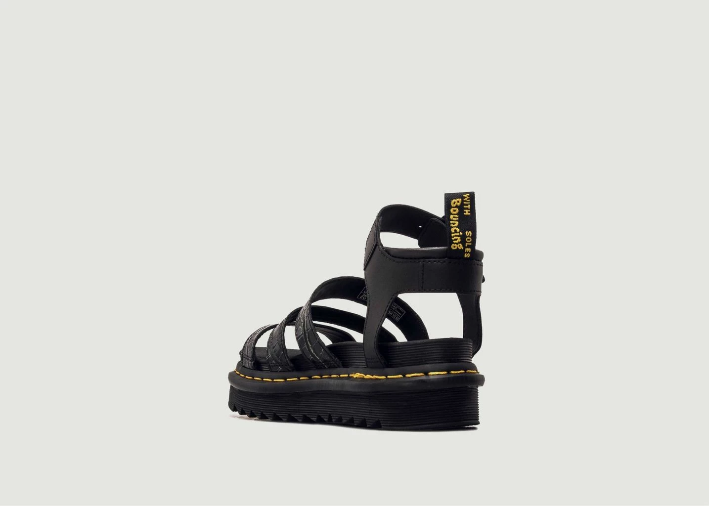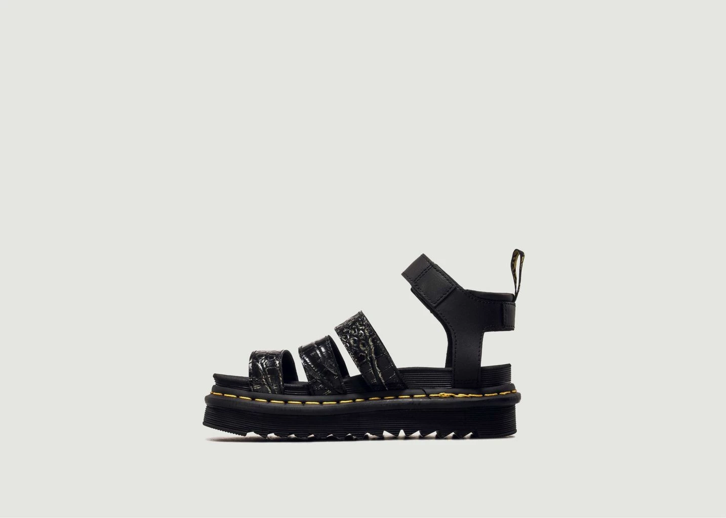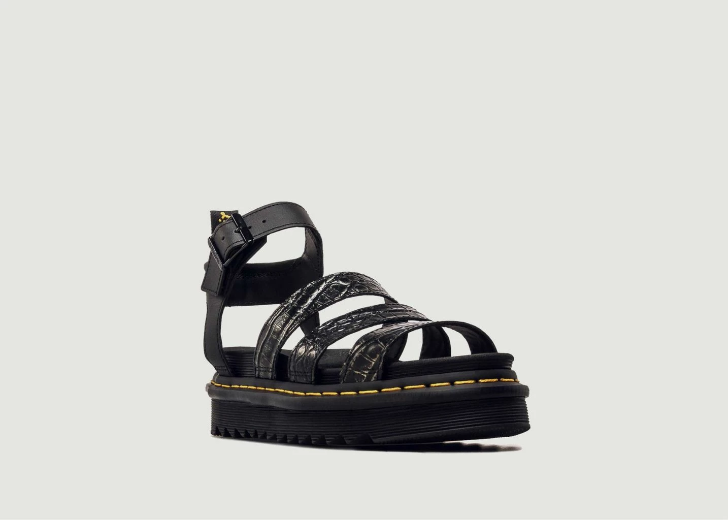 Dr. Martens ‘Blaire’ sandals in smooth black leather, design and extras are in animal print, wedge heel with platform, open cap, adjustable shoulder strap, heel tab, contrast stitching, imitation reptile, non-slip, pin buckle . Fall for these pretty sandals by Dr. Martens! We love them for their style and comfort. Combine them daily with a long dress for a very trendy city look.