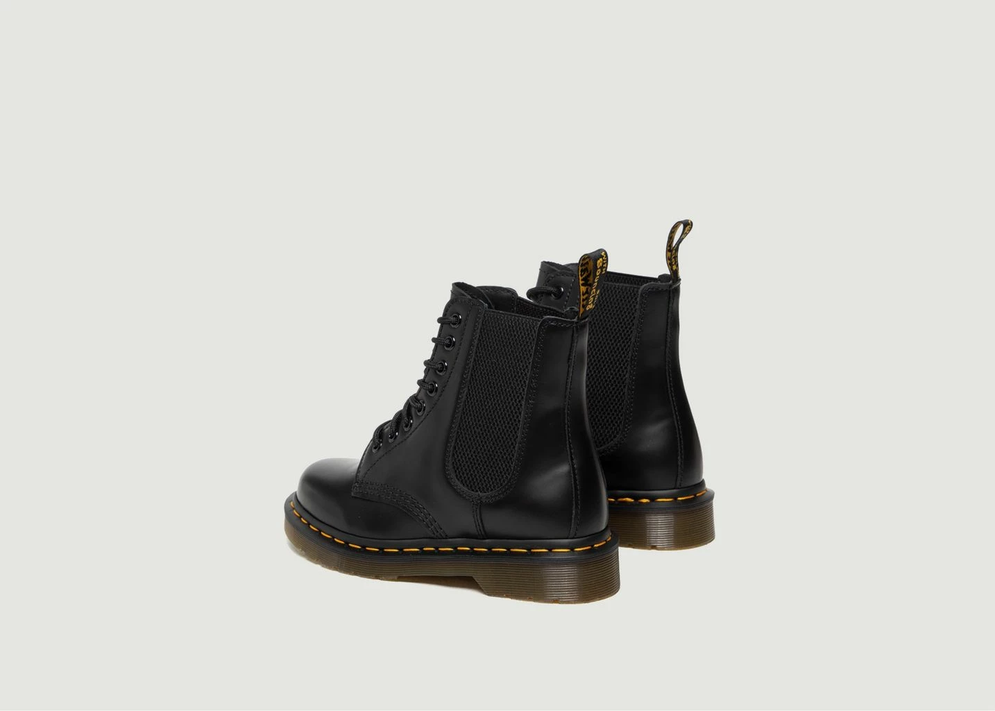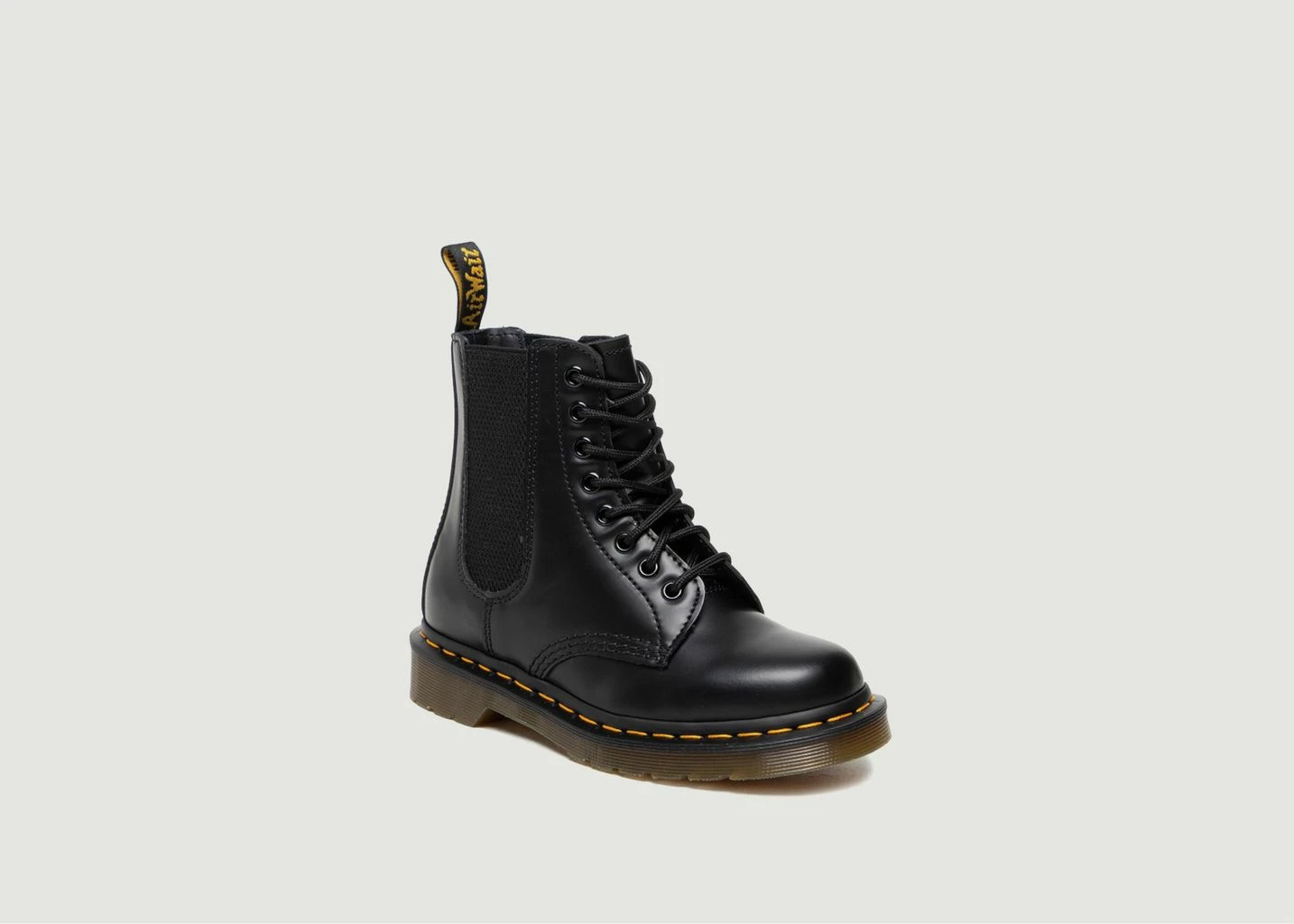 Original Dr. Martens boots redesigned with a new elastic insert. Made from durable Smooth leather. Iconic design with 8 eyelets, yellow stitching and AirWair tab at heel. For a casual look that plays with masculine/feminine codes, embrace the Harper 1460 Boot from Dr. Martens! They are one of the must-have shoes to have in your closet, and this timeless model has been around since the 70s.