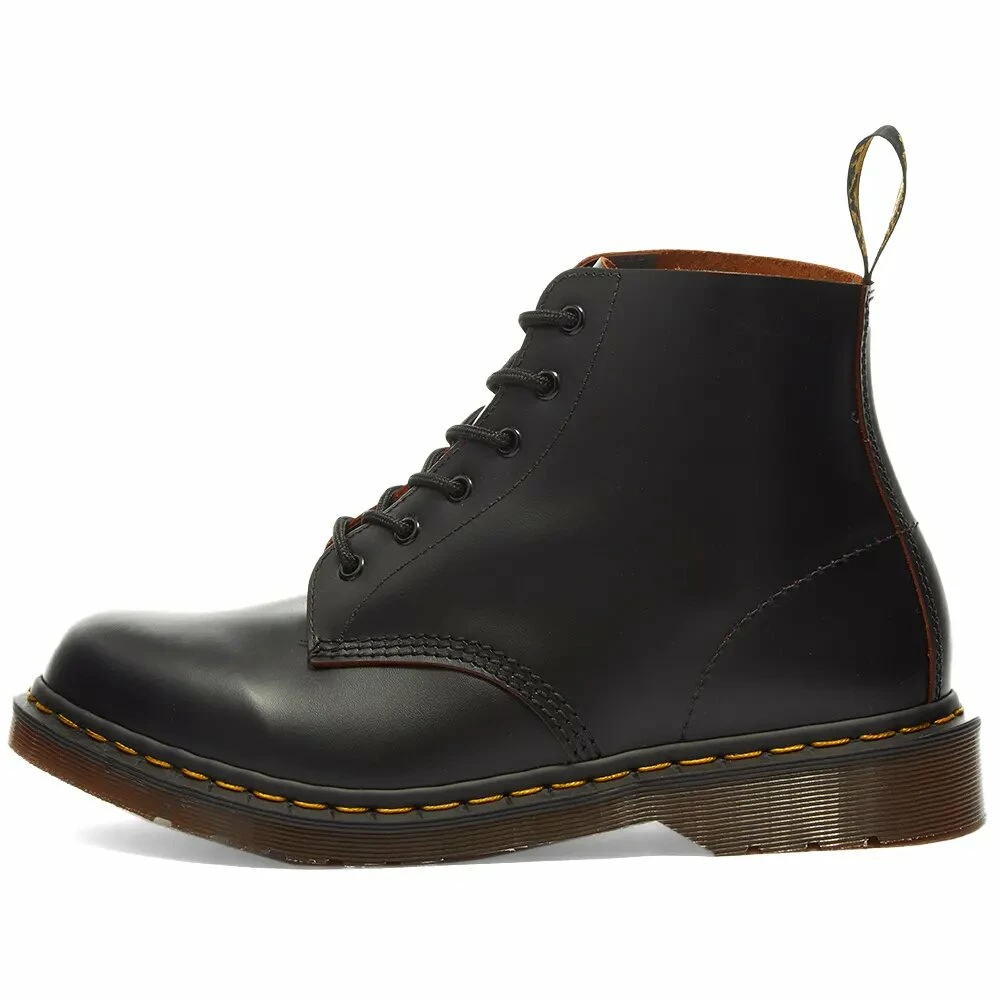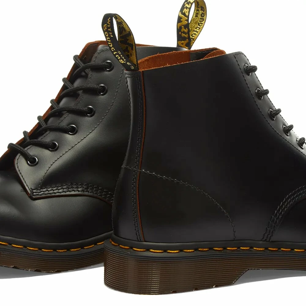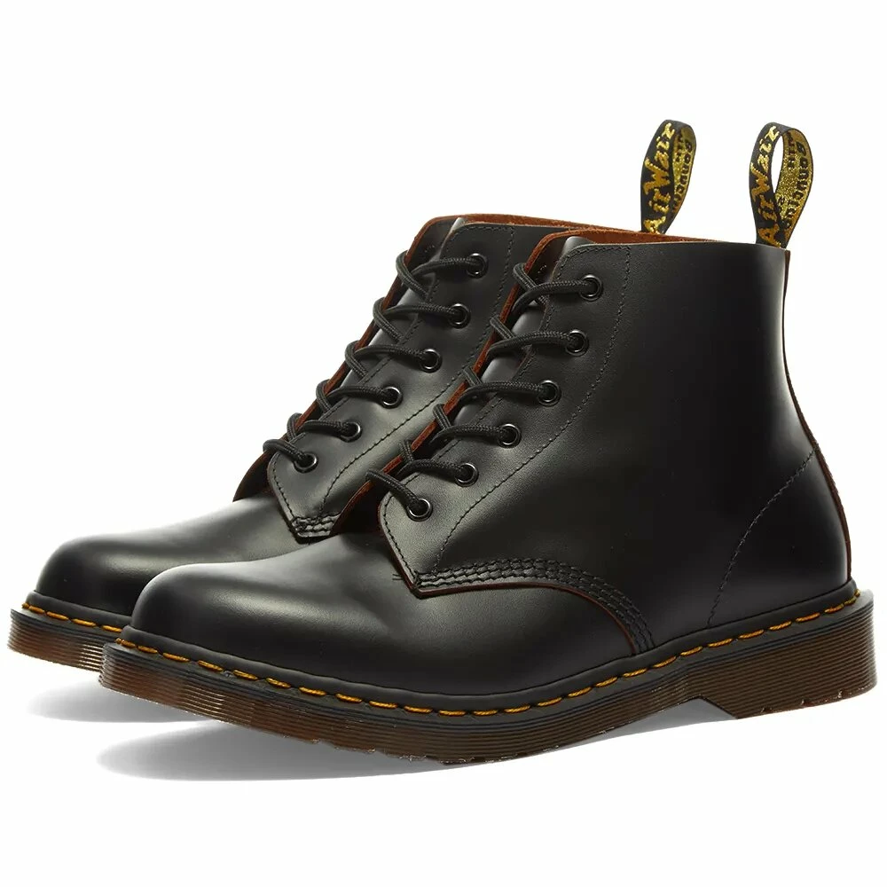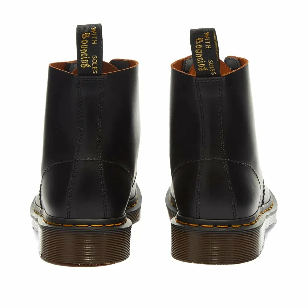 Cuenta la leyenda que la bota 101 se concebió para que formase parte de los uniformes policiales británicos (los cordones de 6 ojales eran más fáciles de atarse en caso de emergencia). Pero pronto cayó en mano de los más rebeldes. El botín pierde dos de los ojales de nuestra bota original pero conserva todo nuestro ADN: del pespunte al tirador con el logo o la suela con cámara de aire. Esta versión recuperada del archivo está elaborada a mano en Inglaterra, siguiendo las técnicas tradicionales en nuestra fábrica original de Wollaston. Siguiendo el diseño original. Y con los mismos materiales.