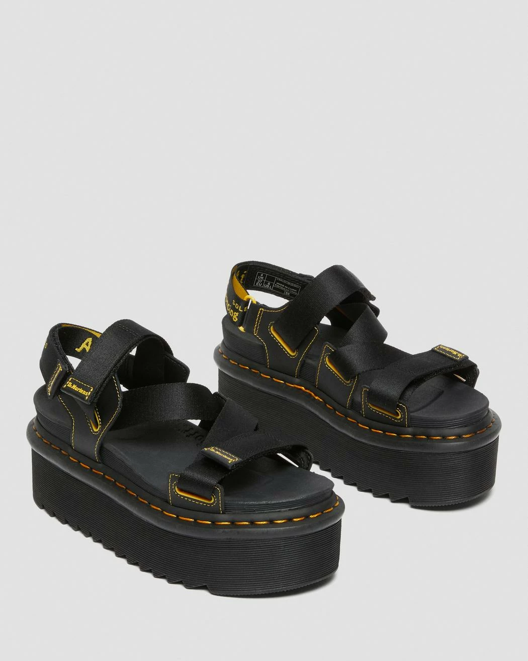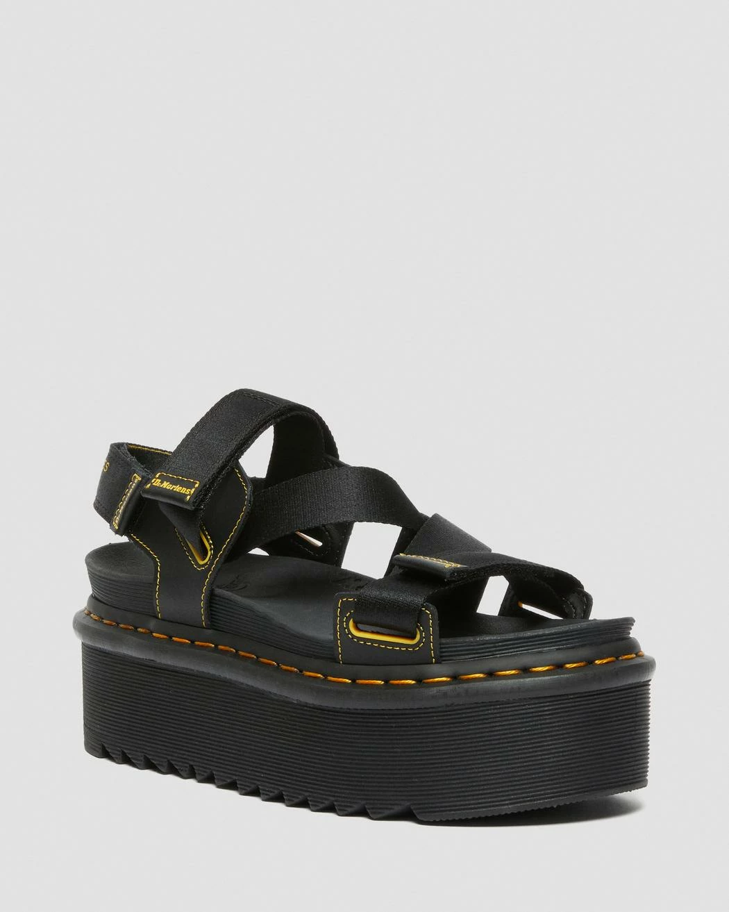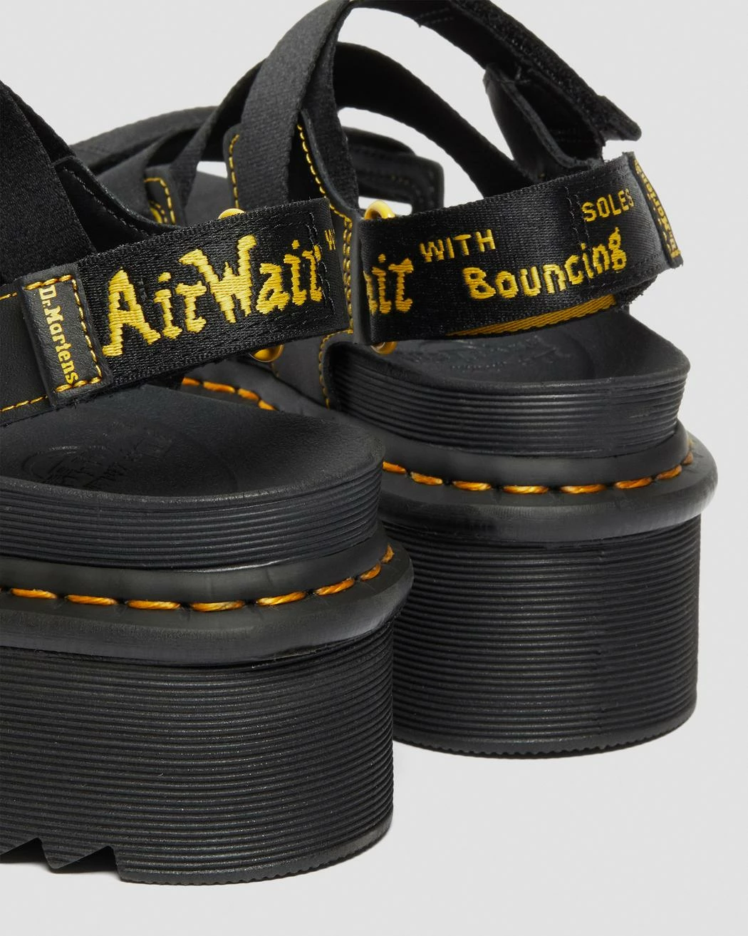 Pure Dr. Martens DNA. Diese Sandalen sind mit einem AirWair-Etikett „with Bouncing Soles“ ausgestattet. Diese hoch aufragende Silhouette ist eine zeitgemäße Überarbeitung einer klassischen Sandale aus Hydro-Leder. Abgerundet mit gelben Nähten und kontrastierendem Gunmetal-Schriftzug. Die SoftWair Memory-Schaum-Fußbett sorgt für Komfort vom ersten Schritt an Hydro ist ein glattes PU-beschichtetes Leder mit mattem Finish. Zum Reinigen mit einem feuchten Tuch abwischen 3 verstellbare Klettverschlüsse Versand Land Dauer der Lieferung Deutschland Sofort versandfertig, Lieferfrist 2-4 Tage EU bis zu 4-7 Tage USA Lieferfrist bis zu 29 Tage
