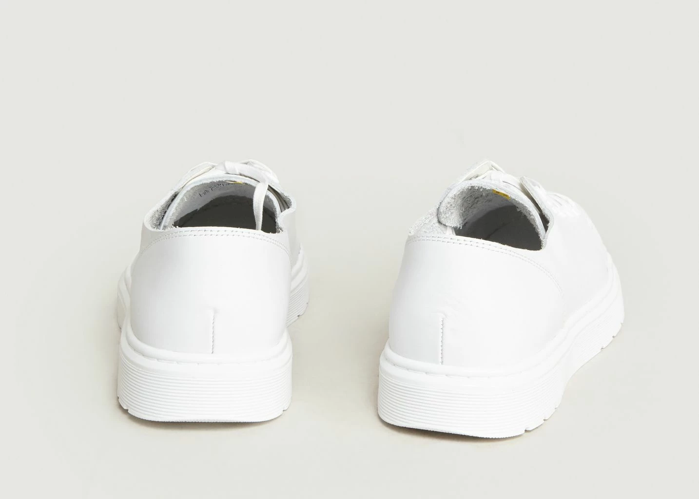 White full grain Venice leather trainers, 6-eyelet lace up closure, textile lining, cushioned air footbed, tonal grip tread outsole. Dr. Martens is a heritage bootmaker founded in 1946 by Klaus Maertens. The proud British brand is renowned for its iconic boots that have led the youth movement across three generations. Deliberately deconstructed and raw, the Dante 6-Eye shoe offers a crisp, minimalist monochrome look in all white. Lightweight and seasonally practical, it’s a fresh street shoe made with Venice, a premium full-grain leather with a soft feel.
