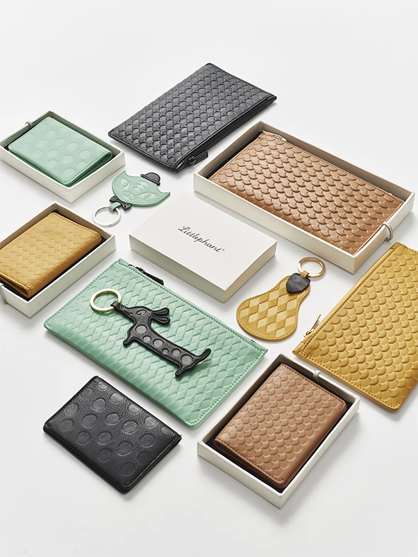 LEATHER ACCESSORIES Our accessories are designed to simplify and organize your every day life. They are made of genuine leather and come in a variety of lovely colours with embossed Littlephant patterns and characters. Every product is beautifully packaged in a cream white matte paper box.