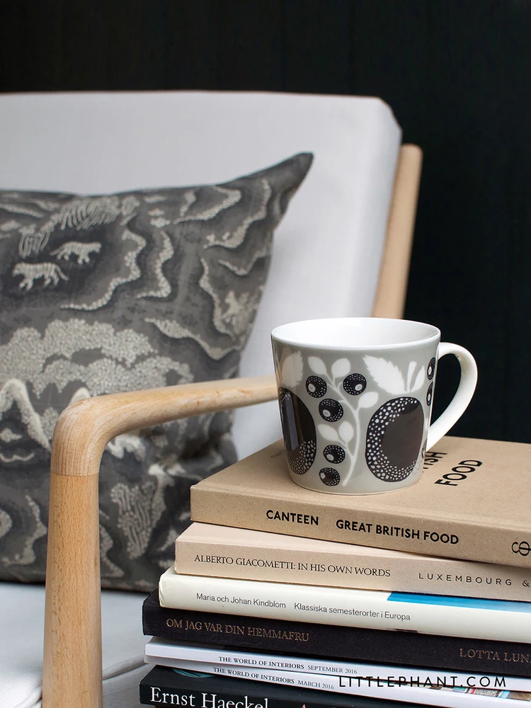 PRODUCT INFORMATION Material: Porcelain Volume: Small mug 200ml (6.76 fl oz), Large mug 400ml (13.52 fl oz), Durability: The porcelain is dishwasher and microwave safe Origin: Designed in Sweden by Camilla Lundsten for Littlephant