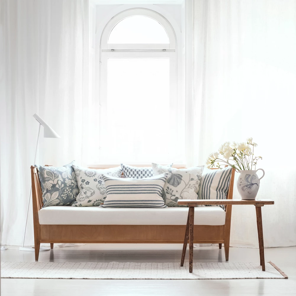 Our Artisan Linen cushion covers are printed on a beautiful artistic high quality linen weave. This weave is lively and make our patterns age with grace. Colour may vary due to the natural character of the linen fiber and it s giving our cushions their uniqueness.