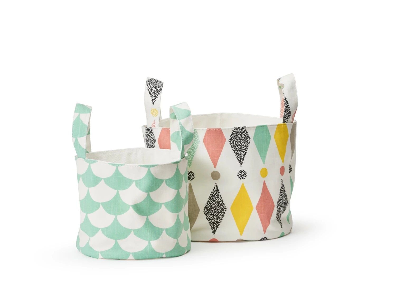 Designed to store everything from your kids toys to your knitting, magazines or laundry, these soft baskets/bags are both practical and beautiful. They come in a variety of sizes and patterns to fit all your needs. The baskets/bags are made of our 100% cotton weave. They are very durable and can easily be folded together when not in use. All baskets have practical handles.
